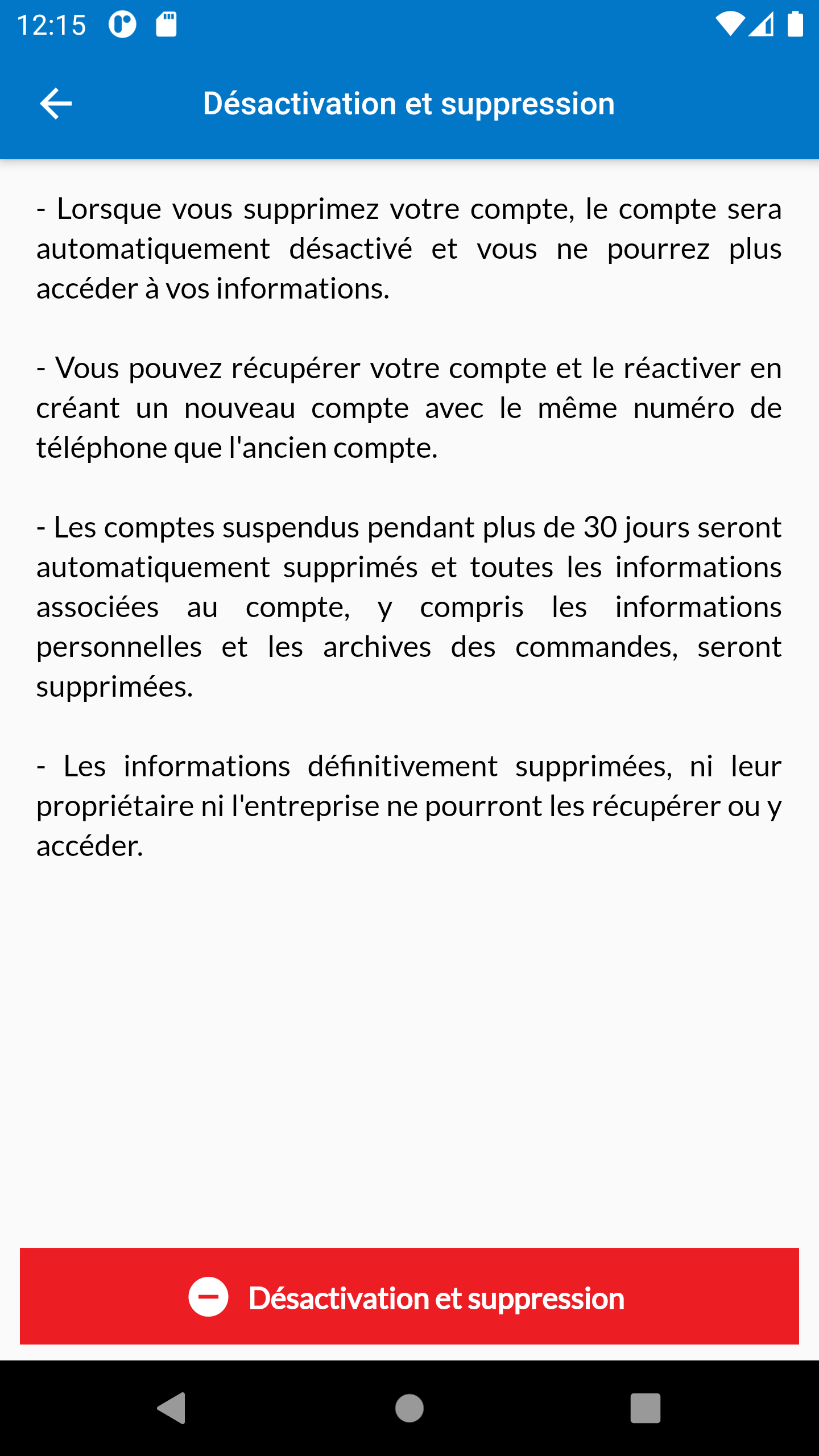 - Lorsque vous supprimez votre compte, le compte sera automatiquement désactivé et vous ne pourrez plus accéder à vos informations.